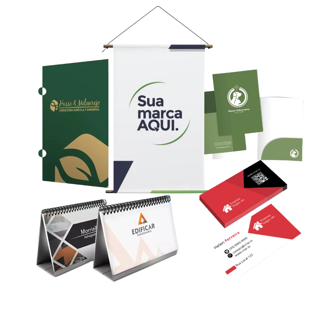 Cartões de visita, pastas, envelopes, calendários, agendas, banners e tudo o mais que você precisar!